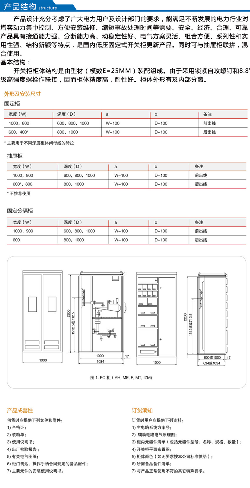 本裝置的基本柜架為組合裝配式結(jié)構(gòu),柜架的全部結(jié)構(gòu)件都經(jīng)過鍍鋅處理,通過自攻鎖緊螺釘或8.8級六角螺釘緊固互相連接成基本柜架,再按方案變化需要,加上相應(yīng)的門、封板、隔板、安裝支架以及母線、功能單元等零部件,組裝成一臺(tái)完整的裝置,裝置內(nèi)零部件尺寸、隔室尺寸實(shí)行模數(shù)化(模數(shù)單位E=25mm)。