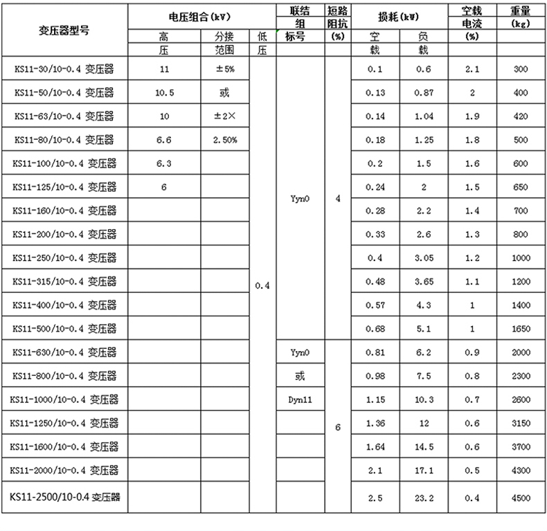 【額定容量】:50~2500kva 【額定電壓】:10/6